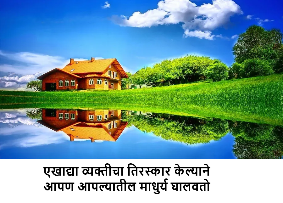 Blogएखाद्या व्यक्तीचा तिरस्कार केल्याने आपण आपल्यातील माधुर्य घालवतो rajendra.patil6 months ago6 months ago00 mins Post navigation Previous: आज मामाचं लग्नNext: स्वतःला सुधारण्यात इतके व्यस्त व्हा, की दुसऱ्याच्या चुका शोधण्याइतका तुम्हाला वेळच नाही मिळाला पाहिजे Leave a Reply Cancel replyYour email address will not be published. Required fields are marked *Comment * Name * Email * Website Save my name, email, and website in this browser for the next time I comment.